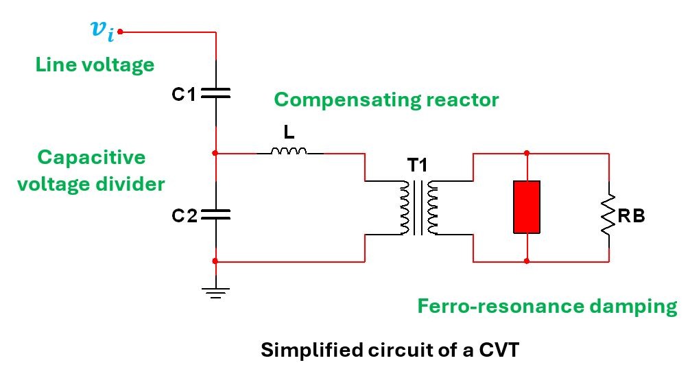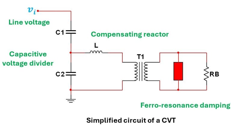A CVT is essentially a stepdown transformer with a capacitive voltage divider stack at the front-end together with a compensating reactor and is the preferred configuration at high voltages. Many CVTs also include a damping circuit.