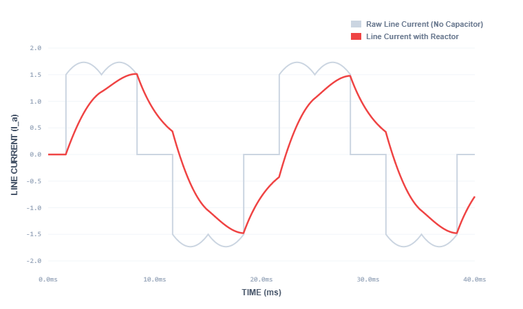 Reactors can also help reduce harmonic currents by adding impedance on the line, hence reducing voltage harmonics and ensuring compliance.