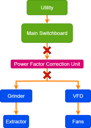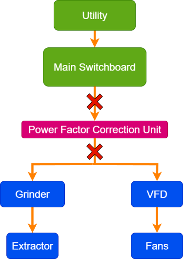Main supply from the utility, PFC connected downstream of the main switchboard